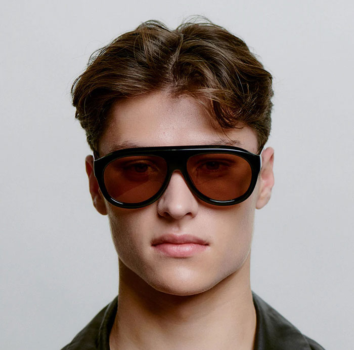 Rio - Black is a reinterpretation of the aviator style with a distinctive and sculptural frame. The large silhouette and deep acetate create an eye-catching look. Designed for sunny days and confident style.
