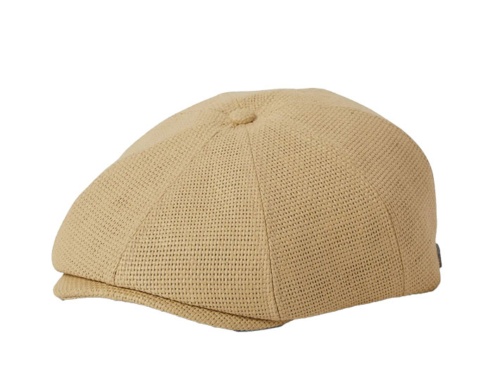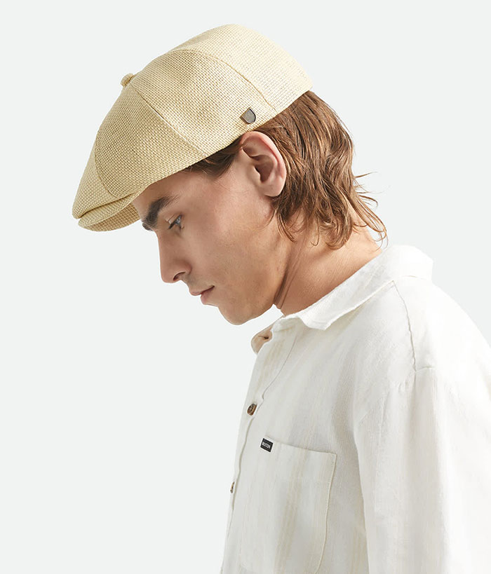 Lightweight newsboy cap in straw or linen blend for warm weather comfort.