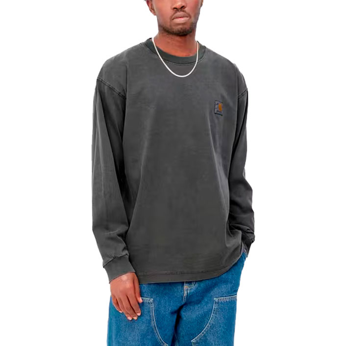 The L/S Nelson T-Shirt is made from lightweight cotton jersey in a loose fit. The item has also been garment-dyed for a softer feel and more complex color configuration. A woven Square Label, rendered murky by the dyeing process, appears on the chest.