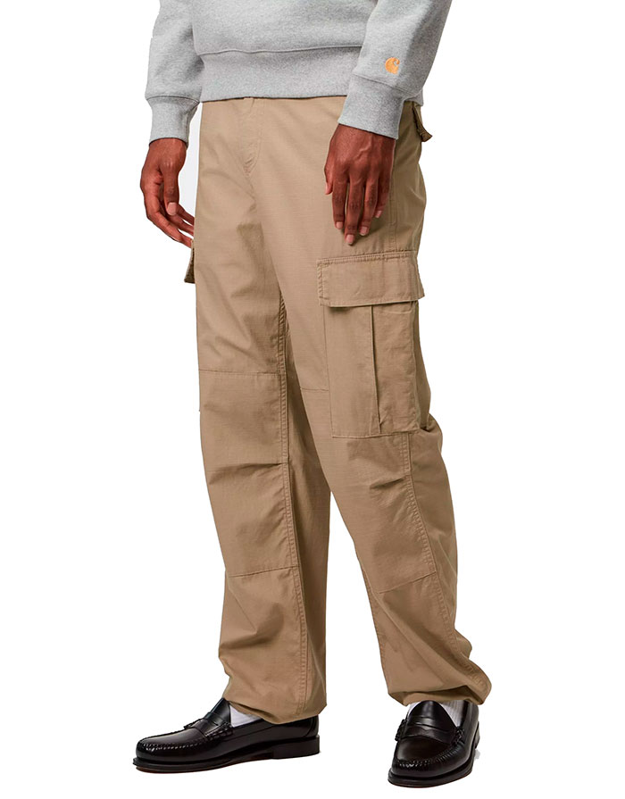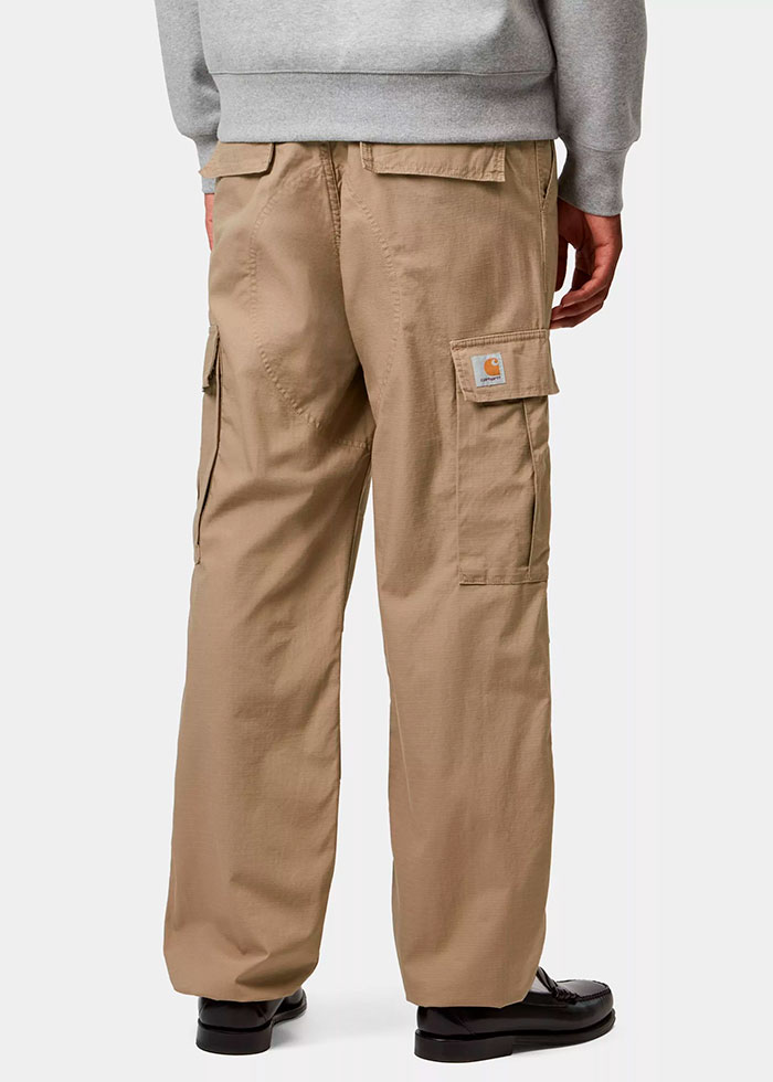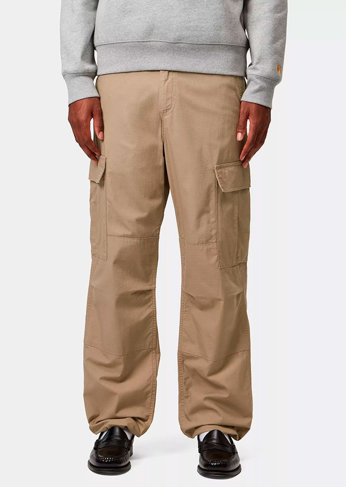 The Regular Cargo Pant is made of midweight cotton Columbia ripstop, which has been rinsed for a softer feel. The style is cut in a regular fit with a low waist and features double-layer knees, adding to its robust qualities. Multiple pockets throughout nod to the garment's military-style influences, and tie detailing at the cuffs allow for the fit to be adjusted.