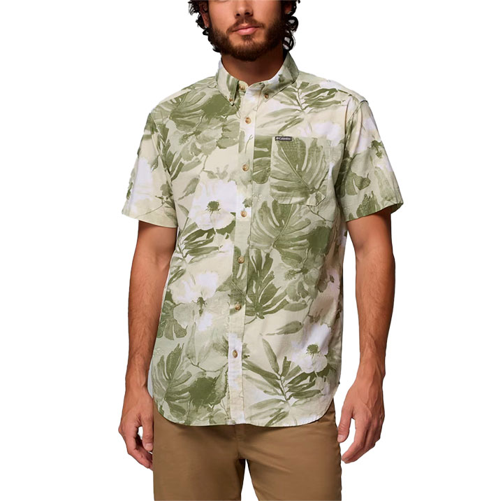 At the office or on the trail, you'll be comfortable in this 100% cotton short-sleeve button-up in a classic silhouette featuring vibrant colors and prints.
