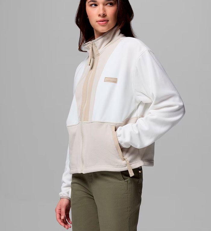 This women's fleece jacket provides soft comfort, and its high collar and zippered cosy pockets shields you from the cold.