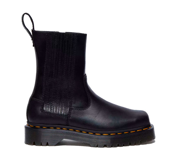 Orleans is a lightly textured waxy pull-up leather with a heavy handle and soft, supple feel. Clean with a damp cloth and care with Dr. Martens Shoe Polish.