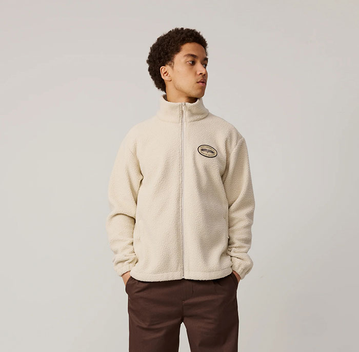 This product is part of the Erik Bruun capsule collection. A regular-fitting fleece jacket with a zipper. Finished with a chest patch detail.