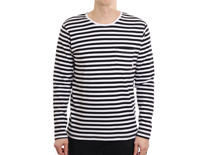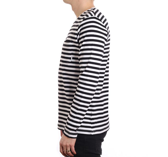 A classic striped jersey long sleeve with o-neck and chest pocket.