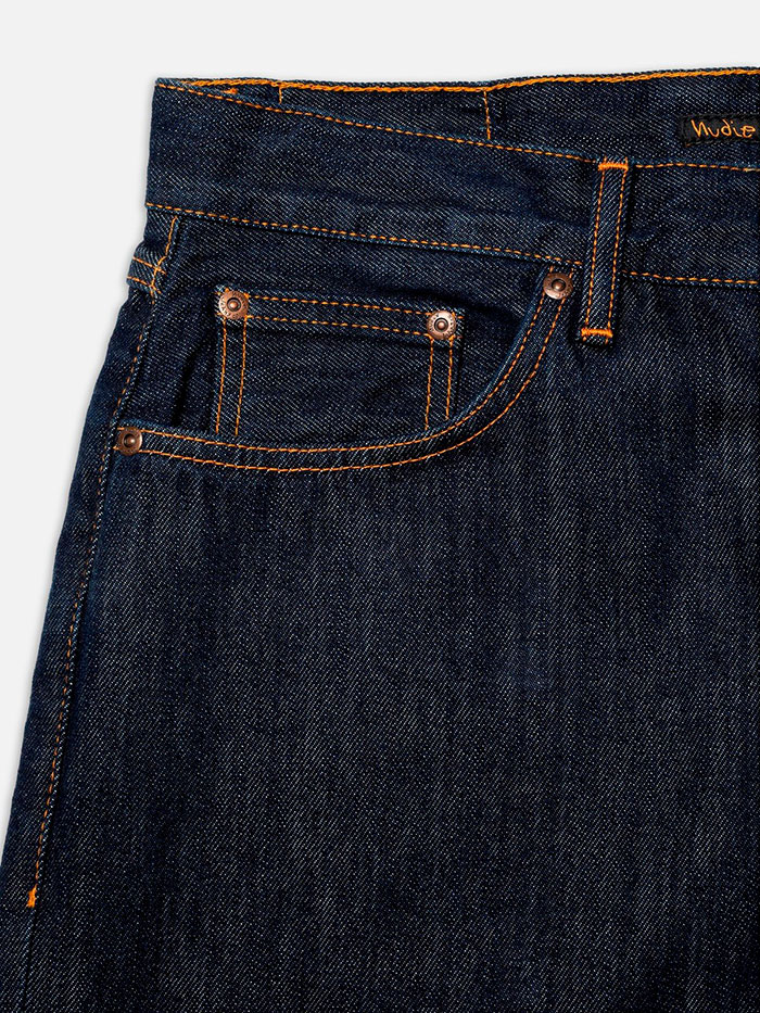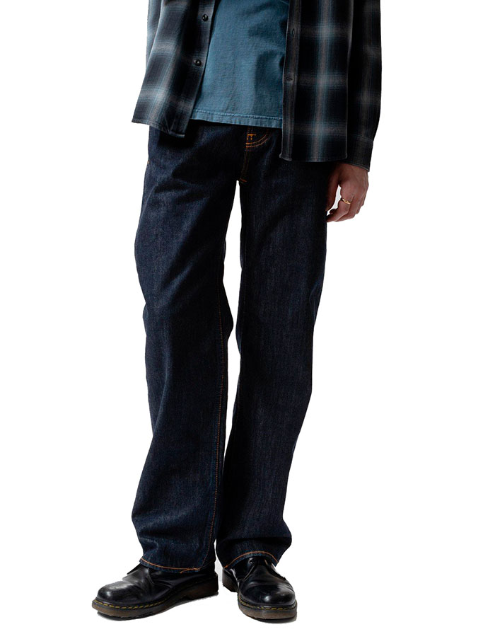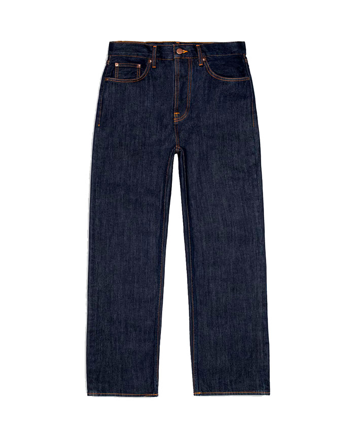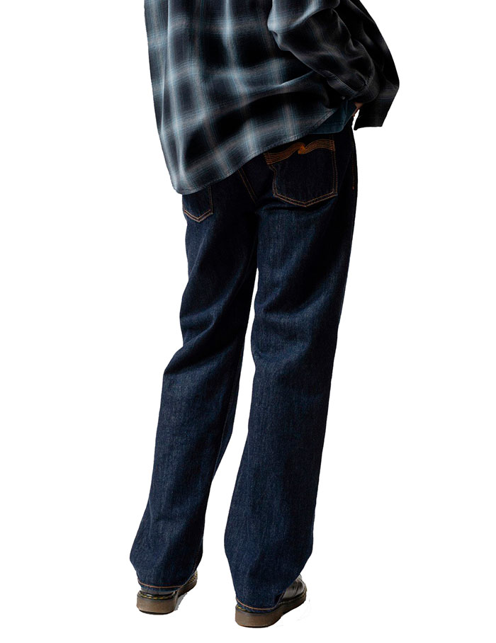 Wide-legged, loose-fit jeans, crafted from regenerative organic cotton in a beautifully simple deep blue wash. The inspiration behind this wash is refreshingly straightforward: a single home wash of dry denim. Crafted from vintage-style deep indigo denim with a medium slub character, the treatment shifts the hue from a dark blue to a rich, redcast blue, while transforming the denim's texture from flat to beautifully irregular and textured.