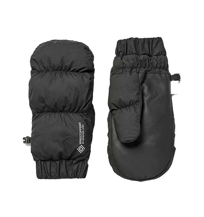 Mittens with elasticated cuffs. Padded with PrimaLoft® ThermoPlume®. Pairing hook. Fully lined. Palms made from 100% sheep leather. Main material made from the water-resistant, windproof, and breathable WINDSTOPPER® fabrication by GORE?TEX LABS.