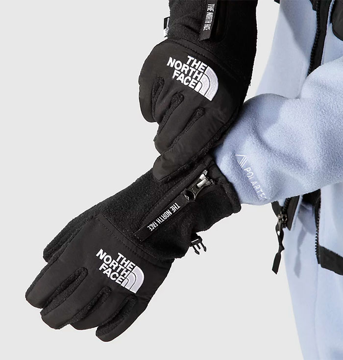 Inspired by The North Face® classic - the Denali Jacket from '89, the Denali Erip™ Gloves are made from the same soft, warm, moisture-wicking recycled fleece. They feature conductive technology in the palms, so you can keep them on while using your phone and the silicon gripper means you'll get a good grip on even the slipperiest of smartphones.