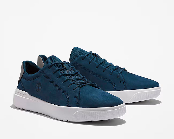 The Seneca Bay low trainer for men mixes casual and up-tempo style with the look and comfort of a trainer. It features the durable construction of Premium Timberland® leather, ReBOTL™ fabric lining containing at least 50% recycled plastic, and the comfort of an OrthoLite® foam footbed that helps to cushion as well as working to reduce unwanted moisture and odour.