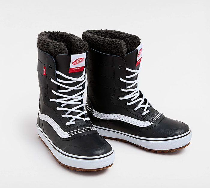 The Standard Waterproof Boot is the modern standard in winter boots-waterproofing, warmth, and traction wrapped in Vans style. Complete with a waterproof vulcanized look, heavy-duty felt liner, and Standard Snow MTE outsole featuring All-Trac all-terrain rubber, this Sidestripe snow boot is a contemporary cold weather classic in the Vans family, and the obvious choice for all your winter needs. It is made with leather and rubber uppers.